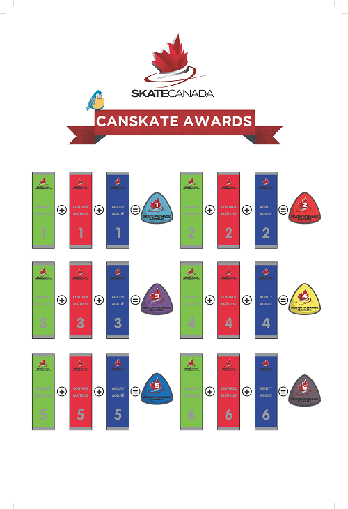 CanSkate Stages 1 to 6 - This program is designed for all beginner skaters ages 6 and up (no experience necessary). Skate Canada Coaches and Program Assistants (youth and adult volunteers) use strategies to help skaters develop skills to help them in all types of skating (figure skating, hockey and ringette). At each stage, skaters work towards earning 3 ribbons (Balance, Agility and Control). Once they successfully meet the criteria of each stage, they will earn a badge and move on to the next stage (see below).